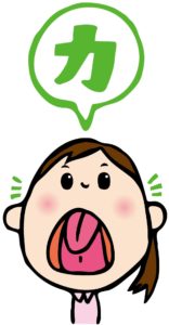 「カ」の発音は、誤嚥しないように食物を食道に送るトレーニングになります。