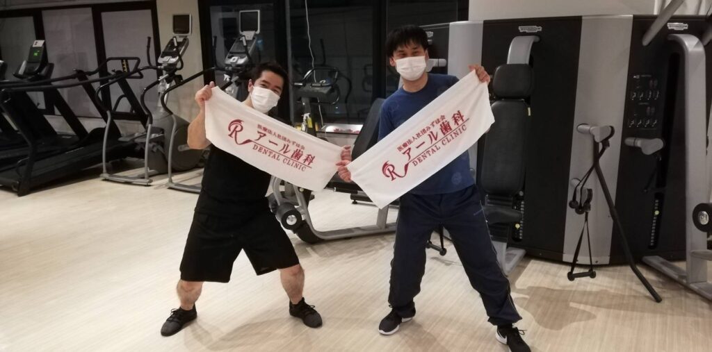 汗を流した後はアール歯科のタオルでパチリ(^_-)-☆いい笑顔ですね!💖