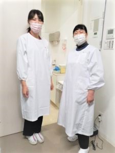 あと外来スタッフは清潔なかっぽう着を着て診療しています。