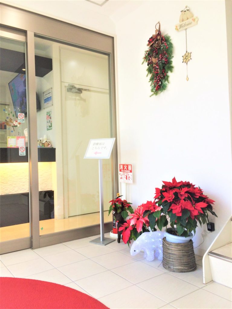 院の入り口のフロアマットとおそろいカラーで、クリスマス気分にワクワクします。(^^♪