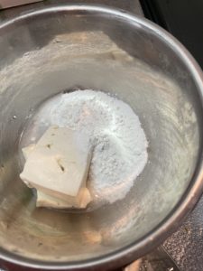 木綿豆腐50gと白玉粉20g、水5gを混ぜて捏ねます。