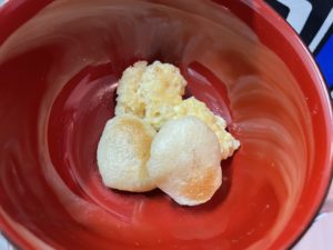 お餅は白玉粉でお餅の味を出して、お豆腐で粘着性をなくすのがコツです