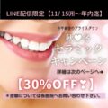 LINE@配信限定で、お友達登録して頂いた方にセラミックキャンペーンなんと 【30%OFF!!】開催中です!! 下記のQRコードをスキャンしてお友達登録したら、受付にて登録したよ~とご提示ください♪ 白い歯✨ […]