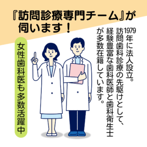 🔵歯科医師1名+歯科衛生士の1~2名体制で訪問
