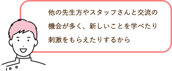 スタッフがいきいきと働く現場は、活気があり笑顔にあふれ、患者様にも元気を与えてくれると感じています。