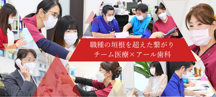 アール歯科は同業種だけでなく他業種のスタッフともコミュニケーションをとる機会が多く、仕事はもちろんプライベートの会話をする場面が多く見受けられます。