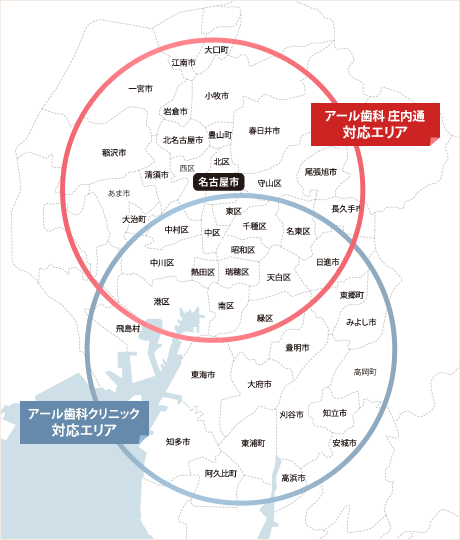 北区・西区・東区・中村区・中区・千種区・名東区・守山区・昭和区・中川区・熱田区・瑞穂区・天白区・緑区・南区・港区・清須市・大治町・あま市・蟹江町・稲沢市・北名古屋市・豊山町・春日井市・尾張旭市・長久手市・小牧市・岩倉市・一宮市・江南市・大口町・日進市