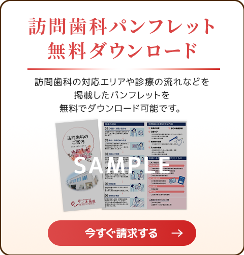 備考:訪問する歯科医師・歯科衛生士には、女性(歯科衛生士もしくは歯科医師)が1人以上が付き添います。ひとり暮らしの女性の方もご安心ください。